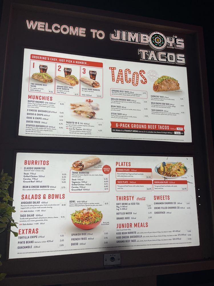 “ I love this Jimboys. .We come here on purpose for your music. And a BIG thanks for changing to Pepsi. Your tacos are amazing. ”